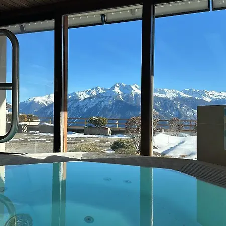 53m²のSki クランアパートはCasino Crans MontanaとArt'Collections Museumから徒歩でわずか7分に位置し、庭園の景色を望めます。 シェッツェロンから2.6キロメートルの距離のアパートに、屋内プール、サウナ、サウナ とサウナがあります。